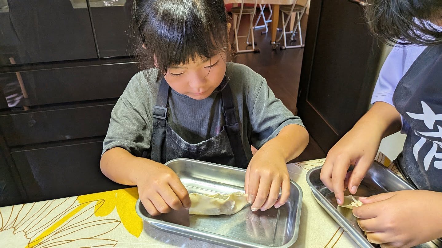 餃子は、皮をのばすのも、あんを包むのも時間はかかりましたが、楽しみながら進められました。ひとつ作るごとにどんどん上達し、お子さまたちもがんばってたくさん作ってくれました。