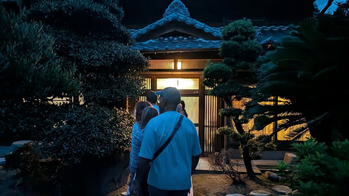 夜に教室に来てくださる方は少ないのですが、庭のライトアップや庭から眺める座敷もなかなか素敵で、皆さんに喜んでいただけました。