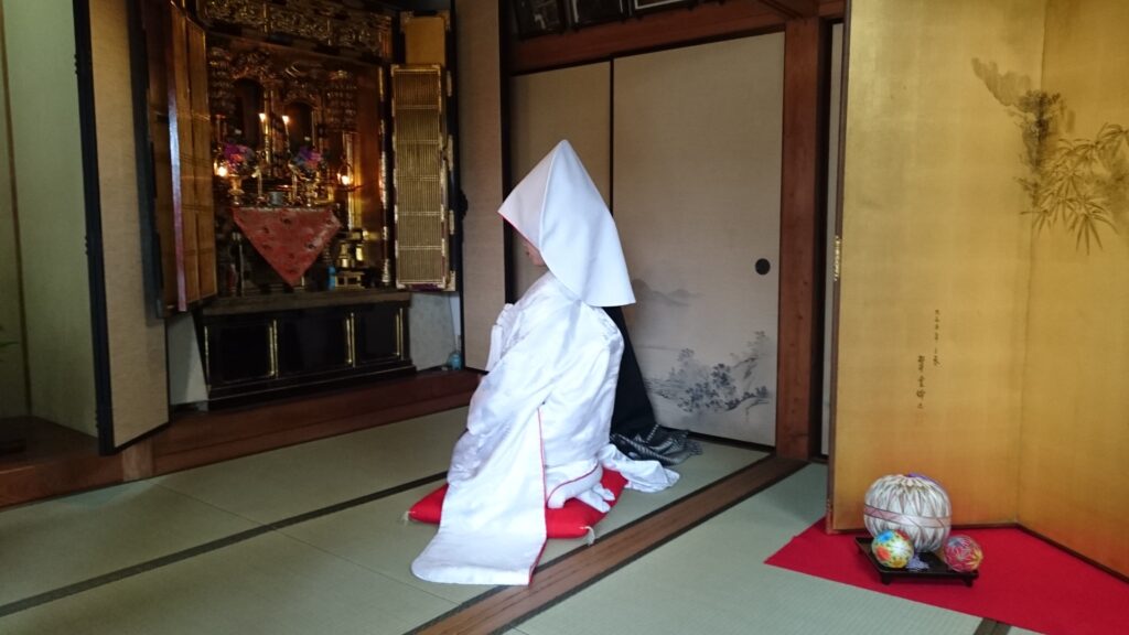 式の際は皆が畳の上の座布団に座り、厳かな時間を過ごしました。