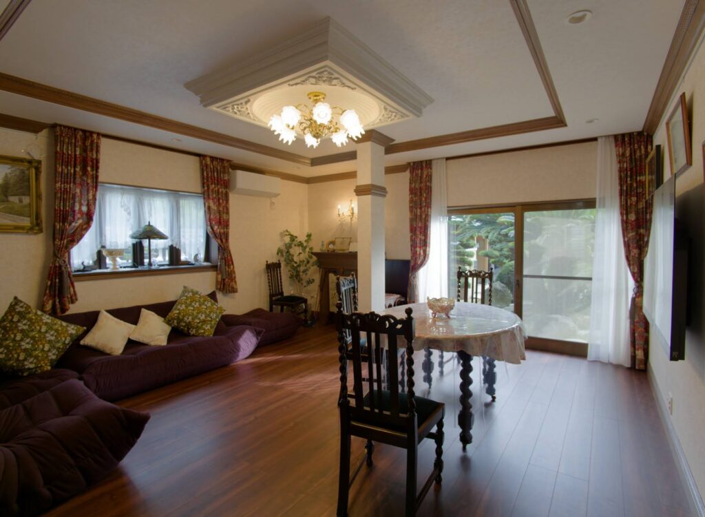 また、親戚が泊まる時には布団を敷き、多くの人が一緒に寝ることができます。朝になると布団をしまい、ふすまをあけ膳を並べ朝食を一緒に食べます。