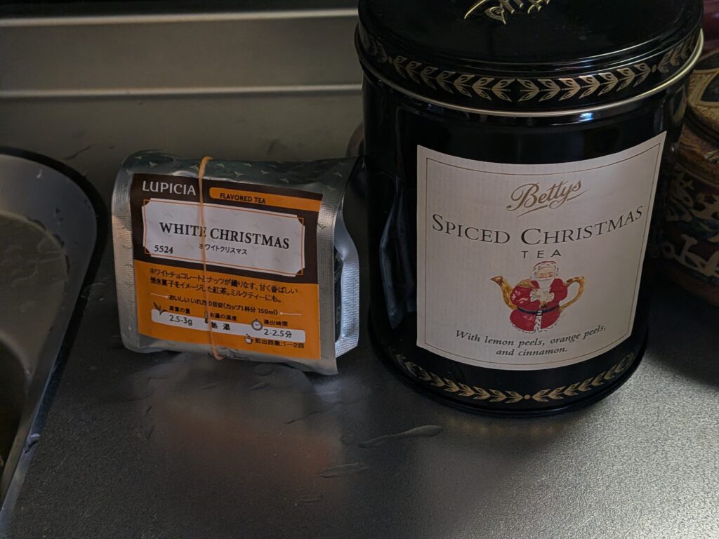 英国ベティーズのクリスマスティーとルピシアのホワイトクリスマスの紅茶を楽しんでいただきました。