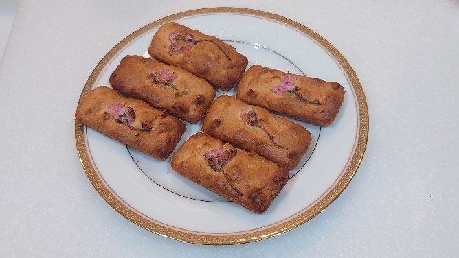 • 4の上に塩を抜いた桜の花の塩漬けをのせ、190℃で15分焼く