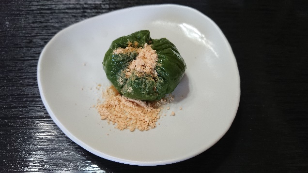 - サランラップに10等分した3を入れその上に4のあんを入れる。さらに10等分した3を入れ丸くしてから輪ゴムで止めて、氷水につけて冷やしておく