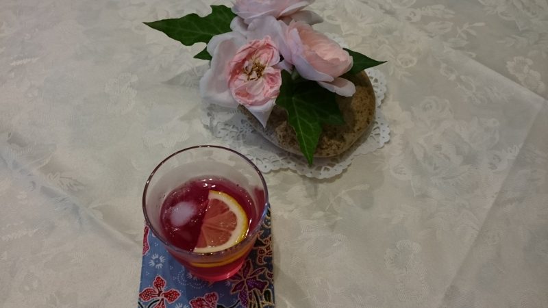 I served home-made red basil juice as a welcome drink.