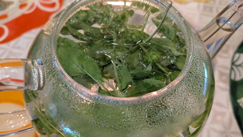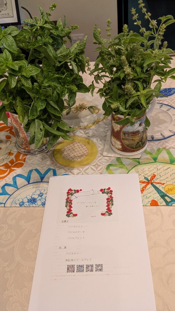 In our monthly afternoon tea class, we had a basil afternoon tea using basil that is growing a lot in our field right now.