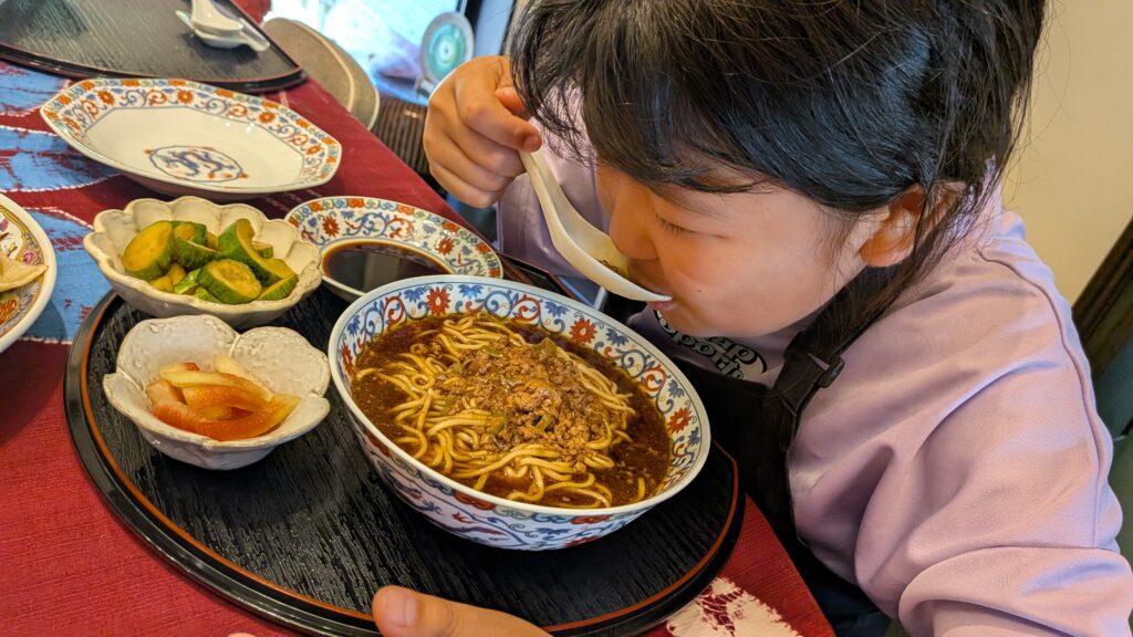 In the ramen and gyoza class, one class wanted soy sauce flavored ramen and the other class wanted miso flavored ramen. Both classes were very good at stretching and wrapping the dumpling skins and making beautiful dumplings. All children love Ramen. Everyone finished their meal. Ramen made with homemade soup is really delicious. If you are interested, please come and make some at Kura.