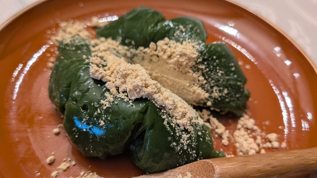 In our monthly Japanese food class, we made a refreshing menu that is easy to eat even for those who have no appetite in summer – sauteed horse mackerel with curry, deep fried mackerel bone, Indian spinach salad, long peas tempura, chirashizushi with herb, cold barley miso soup, green tea dumplings with plum paste.