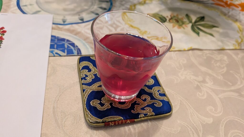 The welcome drink was red Japanese basil juice. All guests were impressed by the refreshing color and said it was delicious. It made all the effort worthwhile.