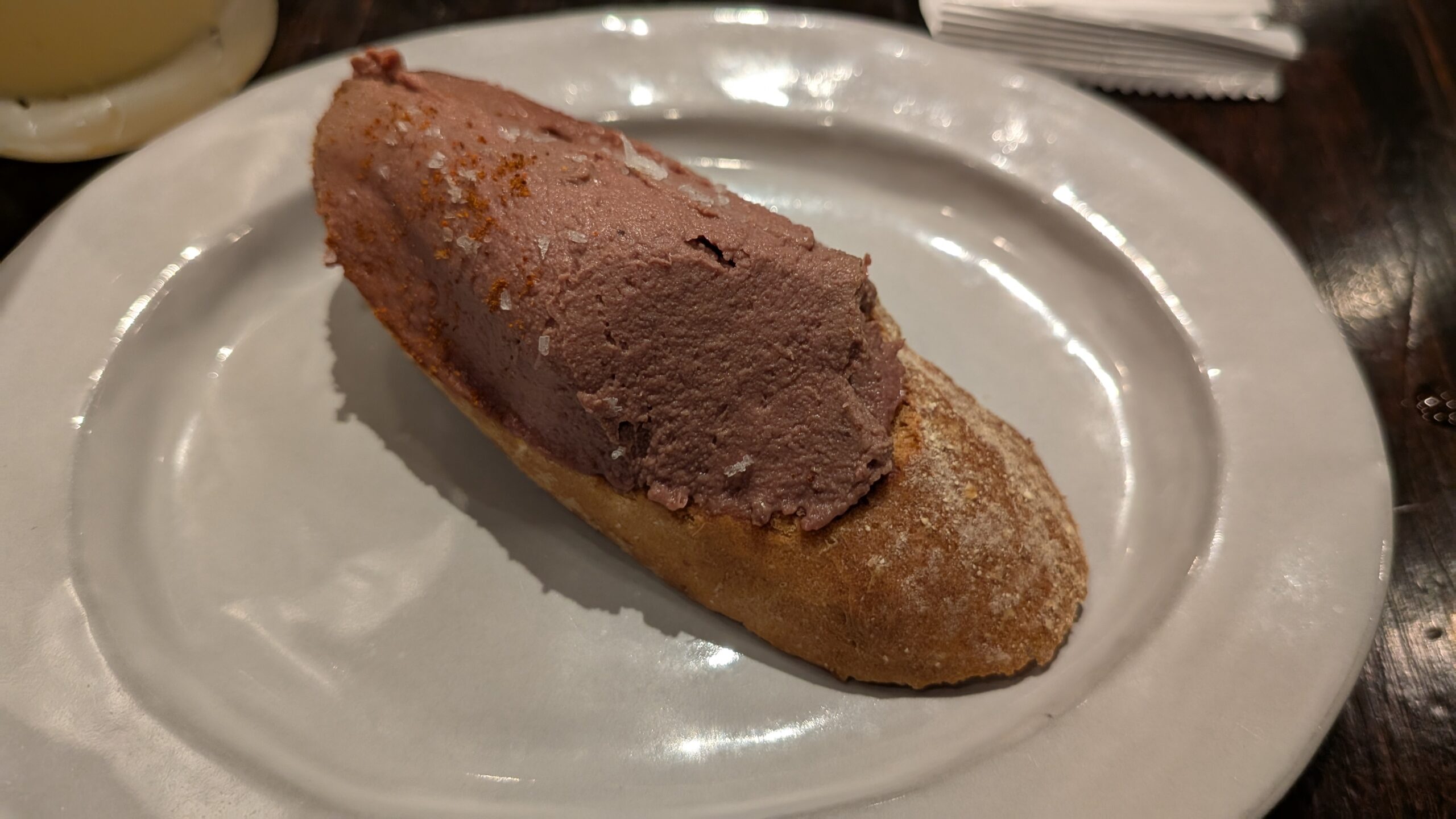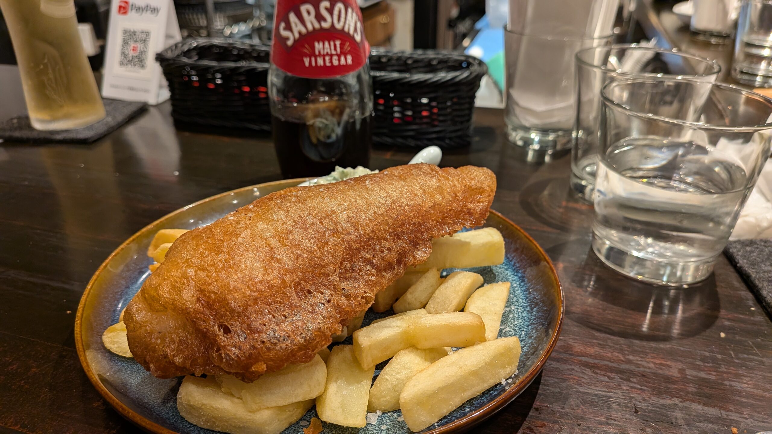 That day, I had liver pate canape, roast beef salad, pork sausage, and fish and chips. Dessert was lemon Victorian cake.