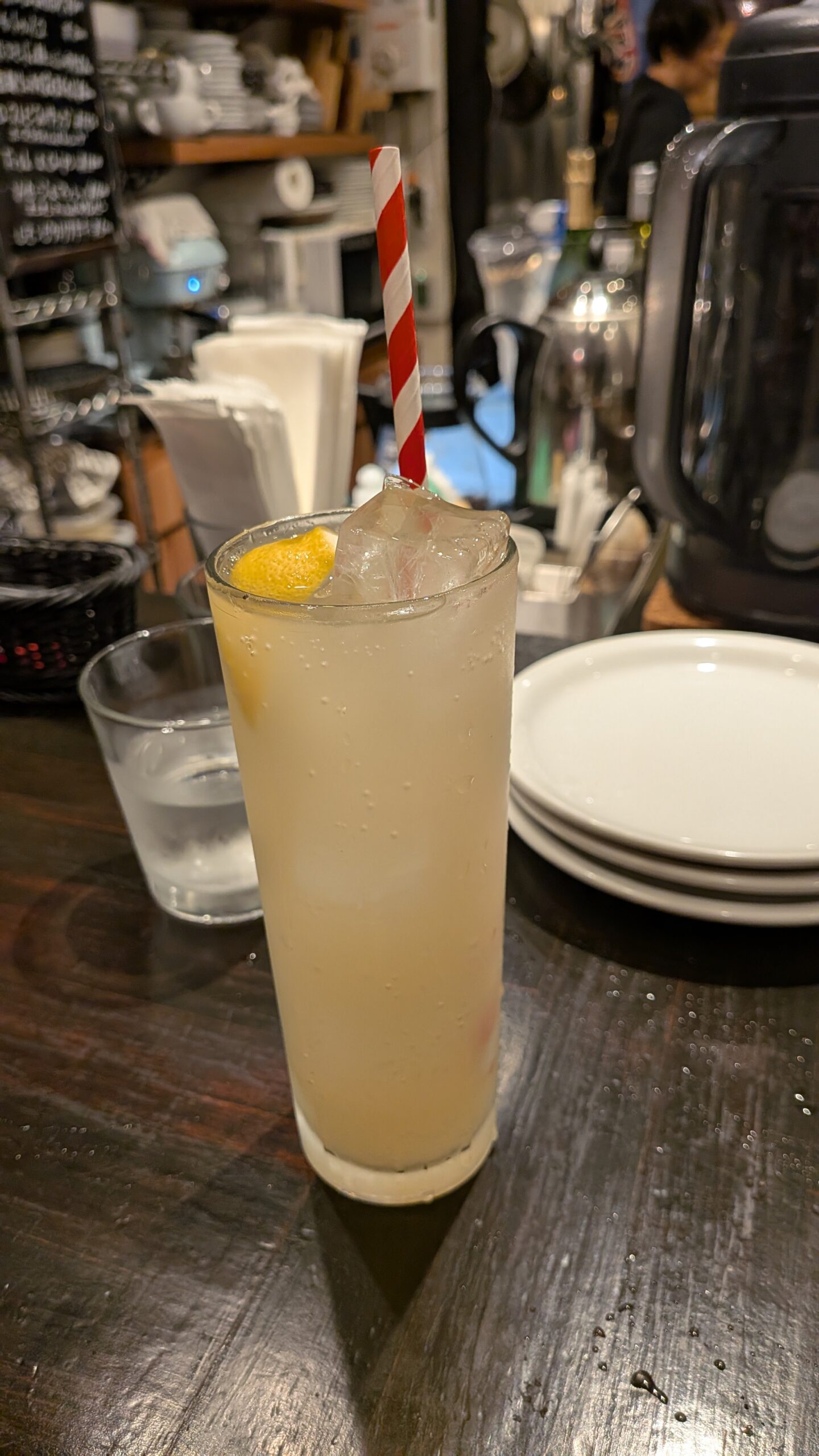 To order, you choose from the daily menu on the blackboard. There are some drink, beer, wine, and homemade lemon ginger juice, ginger ale, and iced tea- so even if you don’t drink alcohol, you can still enjoy yourself. The iced tea, a smoky black tea called Lapsang Souchong, goes very well with the meal.