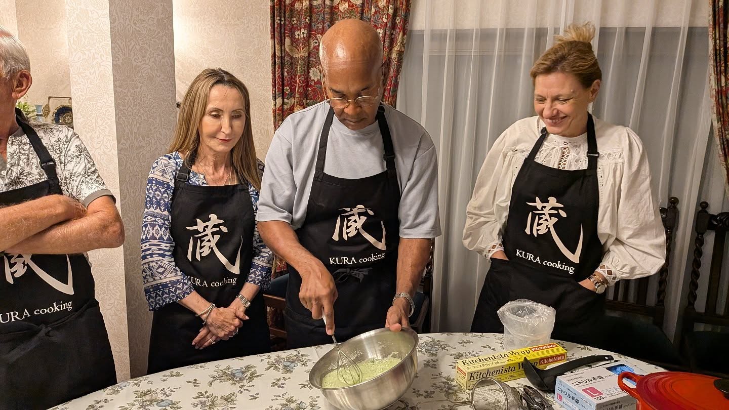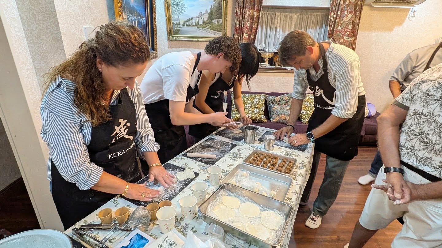 Today we welcomed a group of eight guests from the United States to Kura Cooking for a Ramen & Gyoza class. They were visiting Japan to attend their son’s university graduation ceremony.