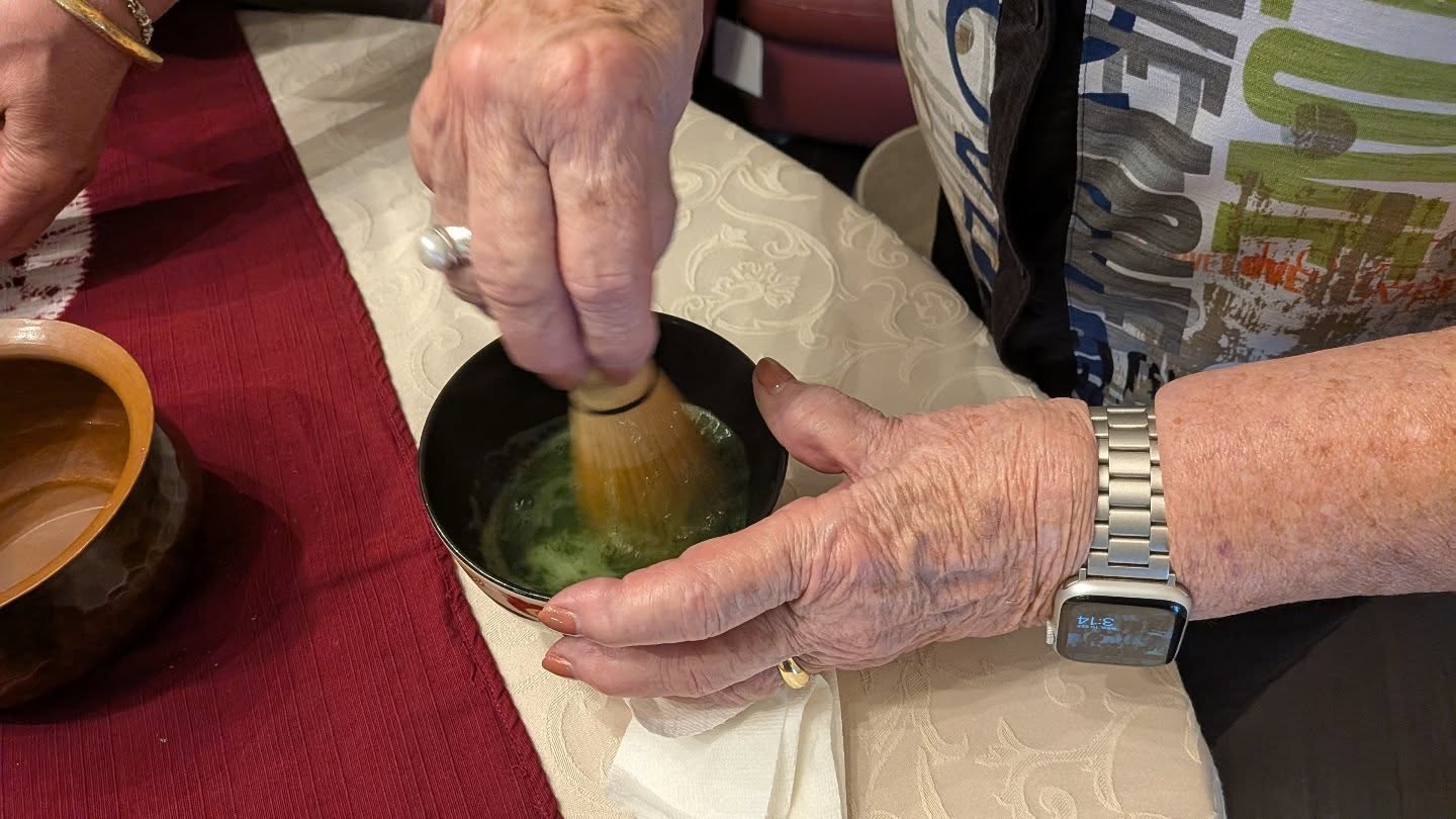 Since they had never experienced a tea ceremony before, they also tried whisking matcha. After the class, on the way back to the ship, we stopped at a 100-yen shop, where they enjoyed picking out kitchen tools and left looking very satisfied.