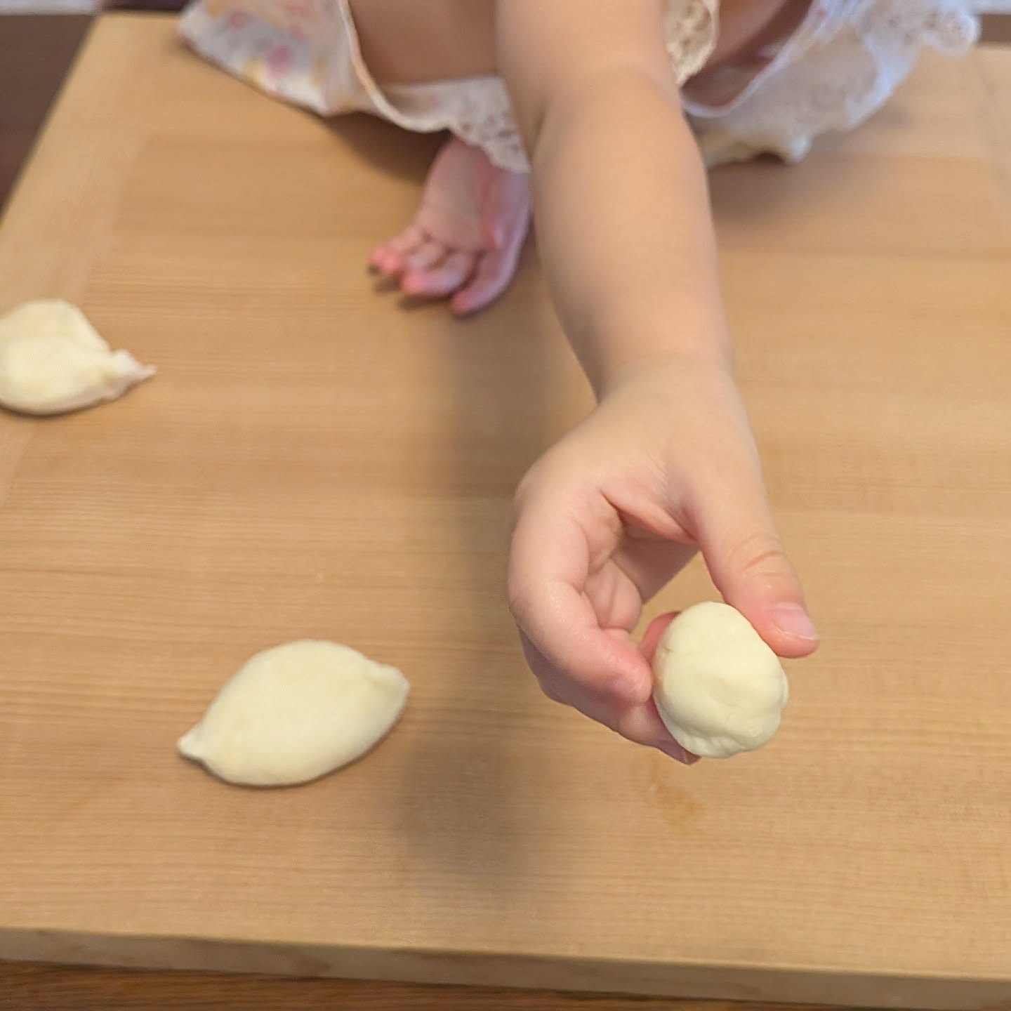 - Rolling the dough into small balls (surprisingly well done!)