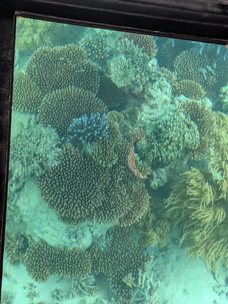 The first stop was Kabira Bay. We couldn’t dive this time, so we settled for a glass-bottom boat tour. Later, from Banna observatory, we viewed Iriomote Island, Taketomi Island, and Yufu Island. our destinations for the next day. The blue ocean there was beautiful, but it was just the beginning.