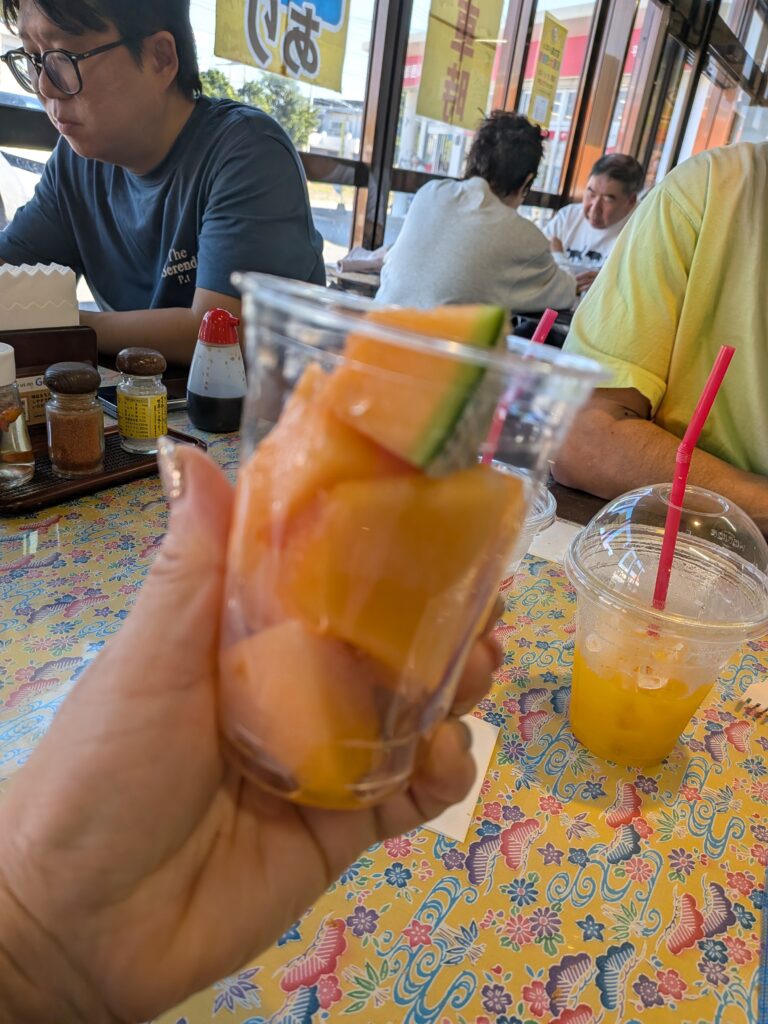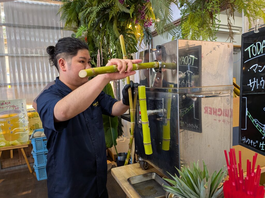 We enjoyed freshly squeezed sugarcane juice and Miyako Island melon with a sugar content of 14 degrees.