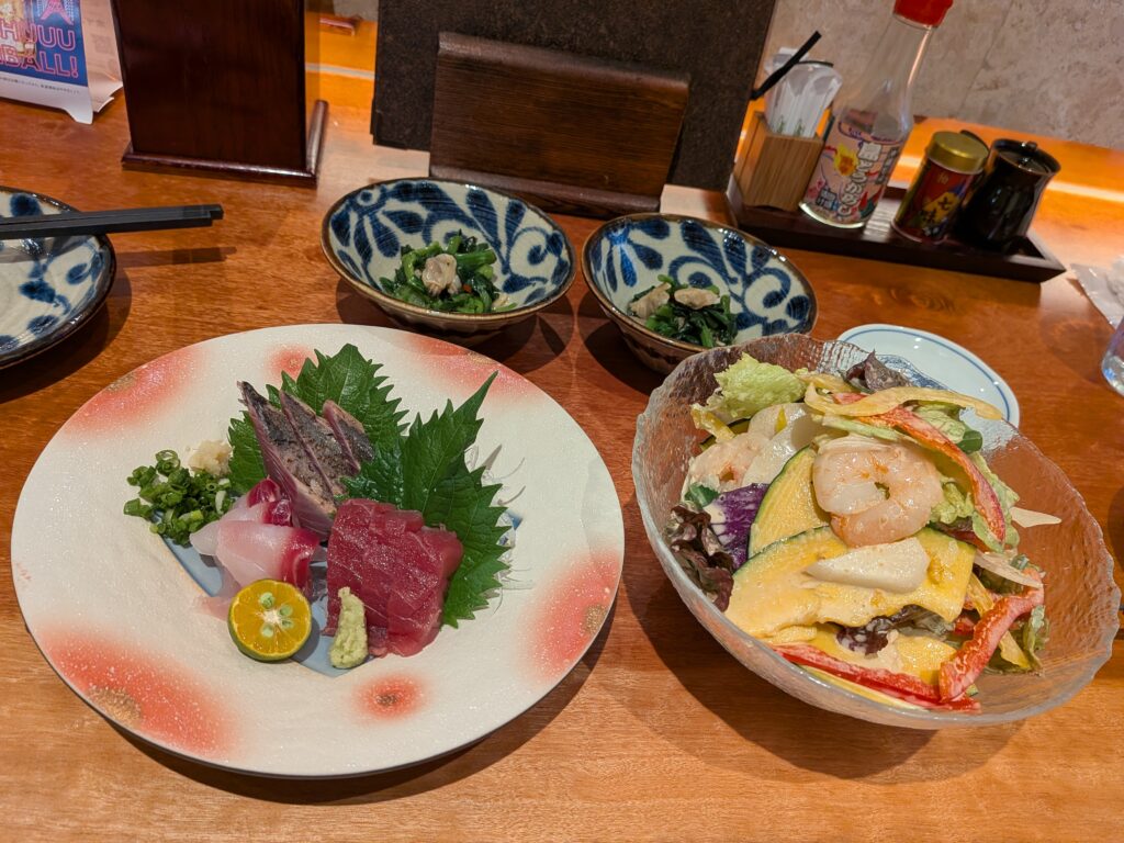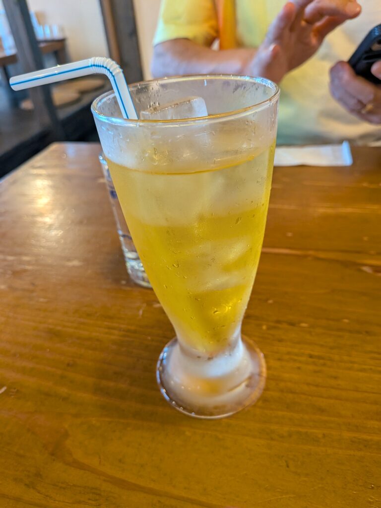After returning to Ishigaki Port for dinner, I ordered an acerola drink, but the acerola wasn’t red! It was orange. I looked it up and found out it depends on the season. The orange ones have more vitamin C and are better for beauty than the red ones.