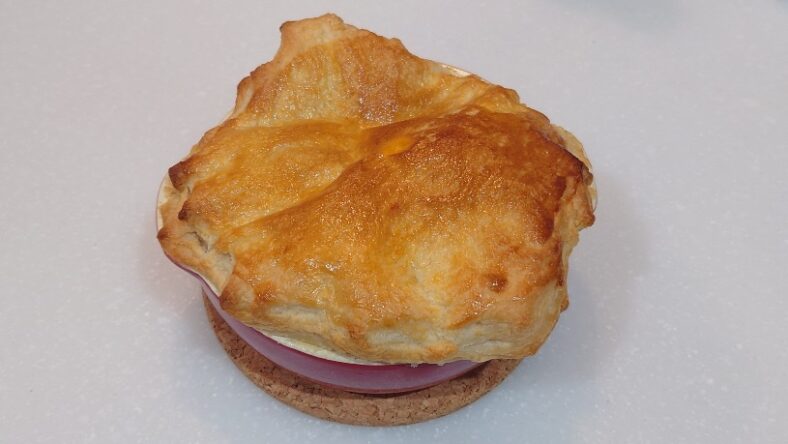 - Brush the edge of the soup cup with beaten egg. Place the rolled-out pie crust sheet from step 7 over it and brush the remaining beaten egg over the pastry.