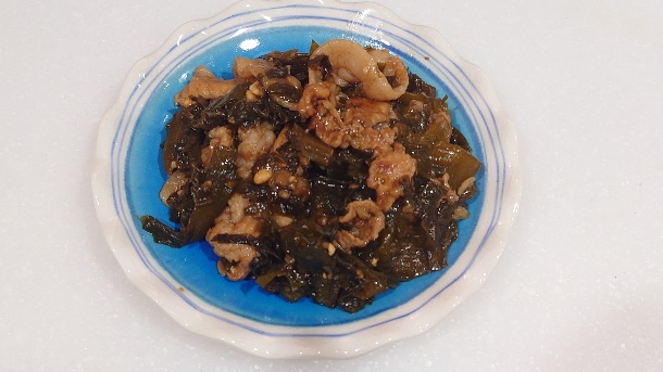 Fried Fresh Wakame and PorkMeat Dish