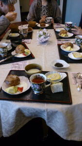 I served English dishes on the Japanese lacquer tray.