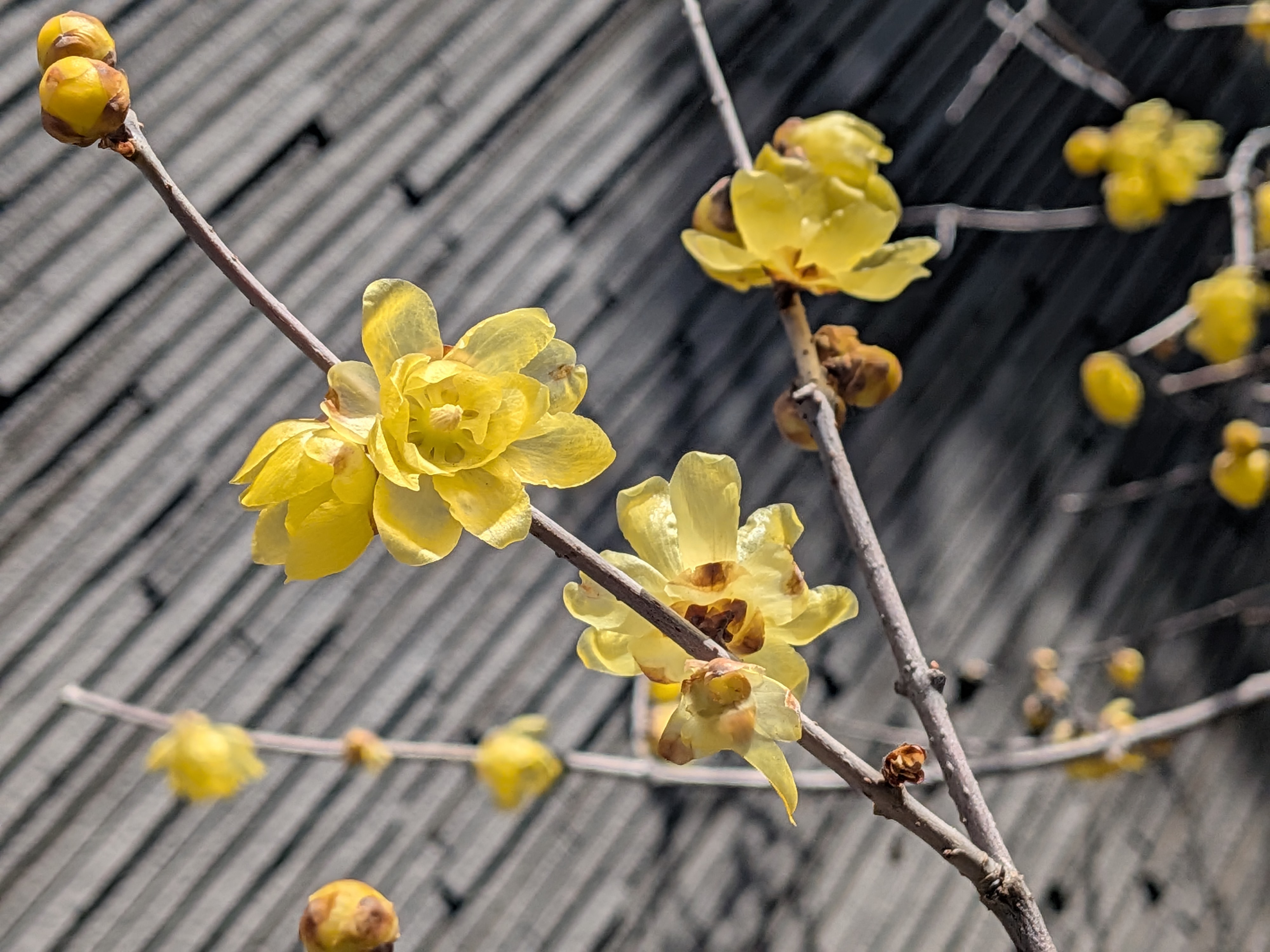 The yellow robai (wintersweet) blossoms are now in full bloom. Soon, you’ll be able to enjoy the red and white ume blossoms.