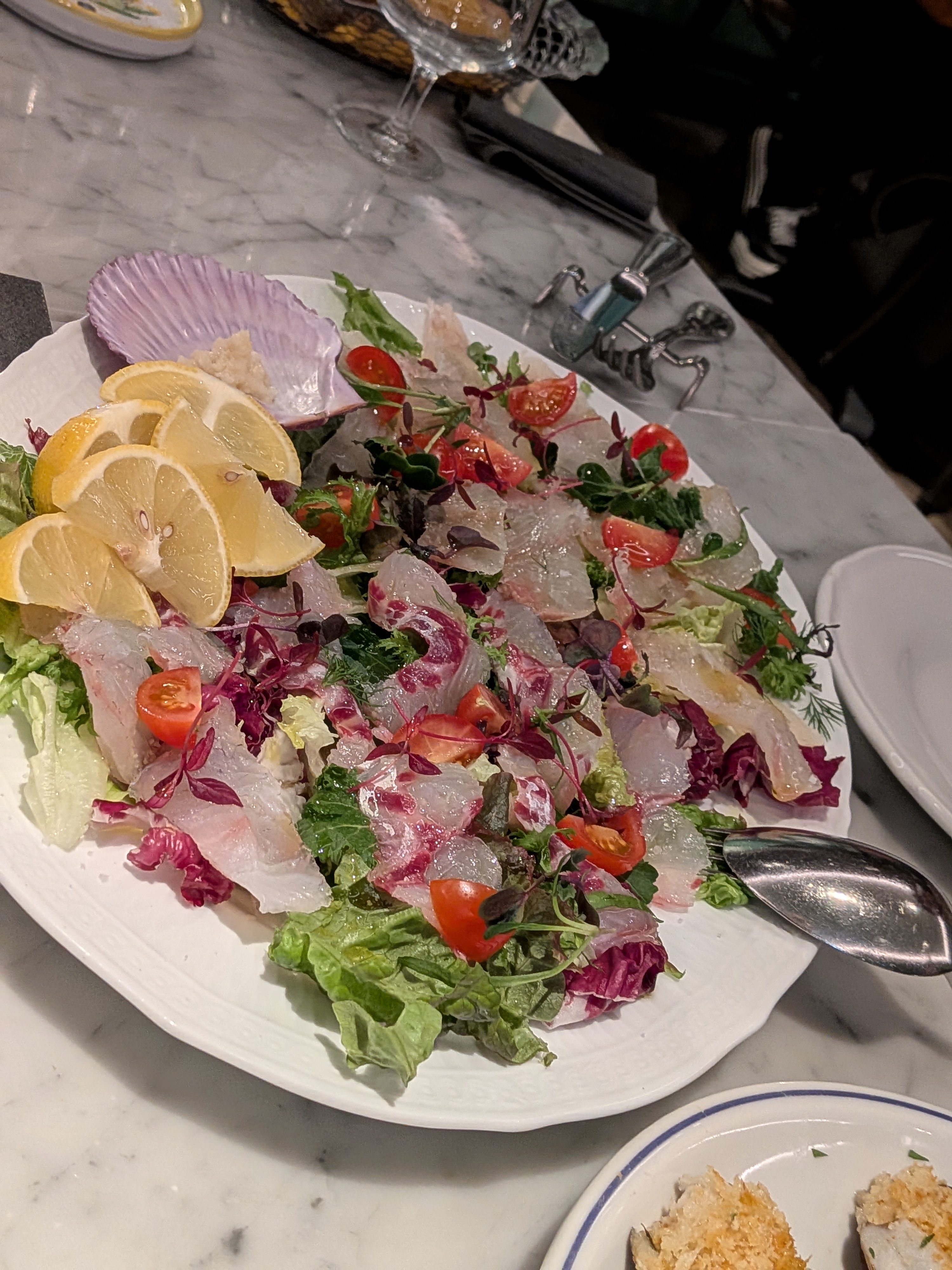 First, my husband and I went to the wonderful Italian restaurant “Centro”. Normally, only regular customers can get reservations here, but my husband found out that new customers can book one table per day through Tabelog, so we were able to go. It’s a unique restaurant where the chef creates a course tailored to each group, so the menu varies slightly depending on the guests.