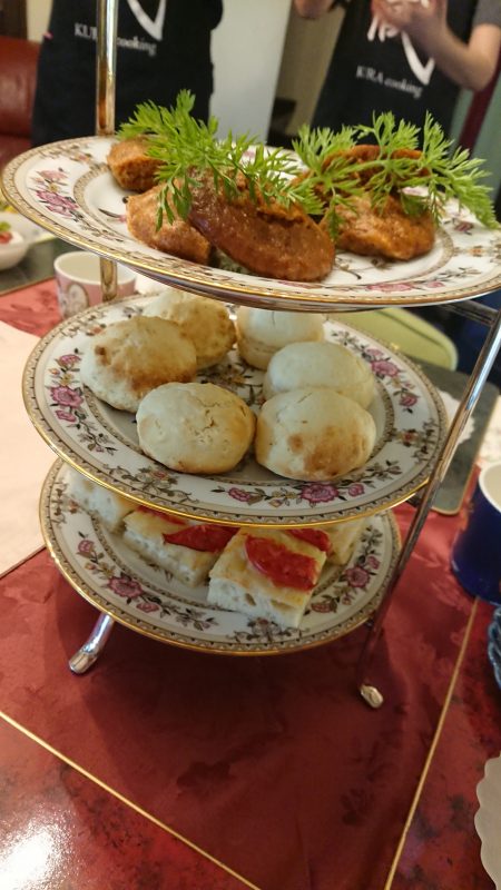Some Japanese people enjoyed drinking Maccha in front of the Golden screen, some wanted to walk around the garden, some wanted to learn how to make Japanese dishes and some wanted to make English afternoon tea cakes