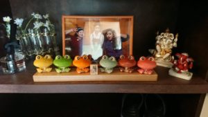 6 frogs means “mukaeru(welcome)” mu means 6, kaeru means frog.