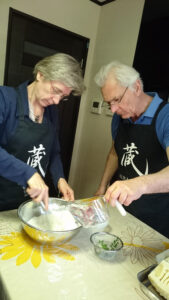 For desert we had“rice Jelly”with Matcha. They experienced how to perform tea ceremony. They were able to drink bitter tea, which we had with sweet Japanese cakes. They had a very good time, they said. I’m hoping for many more foreign cooking students.