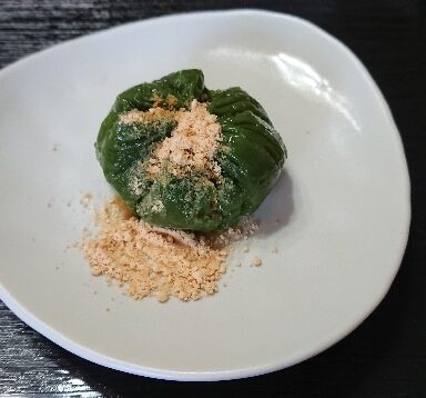 Matcha Water Dumplings with plum jam