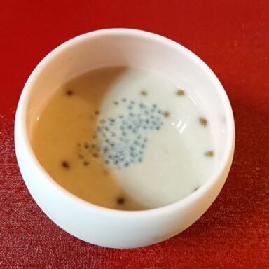Sweet green beans soup with fermented rice drink and milk
