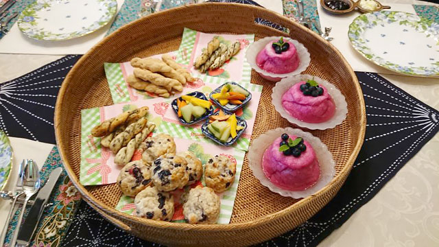 In Kura-cooking, I hold the afternoon tea classes every month. Students can make 2 kinds of cakes and 2 kinds of sandwiches. They also enjoy drinking 2 kinds of tea.