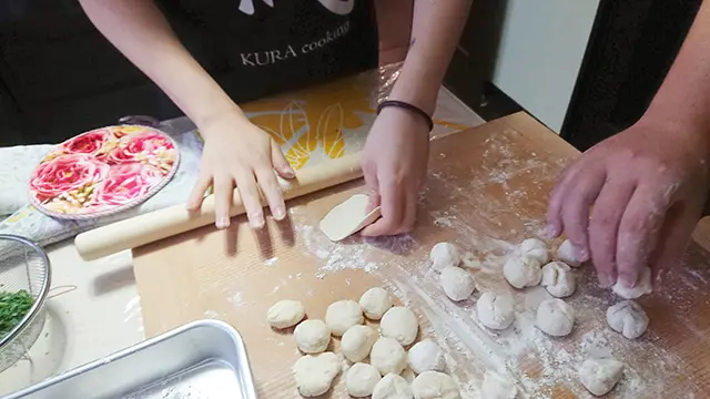 • 餃子は皮から:生地づくり→伸ばす→包むまでを丁寧に。