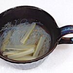 1の出し汁を温めてセロリ・春雨を加える