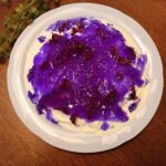 ハロウィーンにぴったりの色のチーズケーキです。バタフライピーゼリーとチーズはとても相性がいいです。
